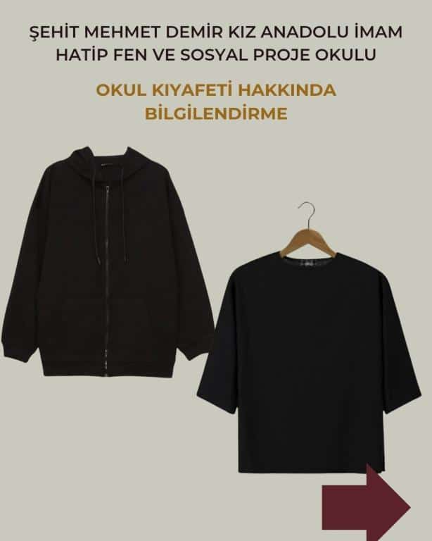 2025-2026 eğitim öğretim yılında Lise ve ortaokul kategorisinde Milli Eğitim Bakanlığımızın da aldığı karar doğrultusunda okul forması olarak yukarıdaki görselde bulunan üst giyim ve aynı renklerde alt giyimi tercih edebilirsiniz. Bir önceki yıl kullandığımız okul formamızı giymek isteyen öğrencilerimiz bu formaları da giyebilirler.