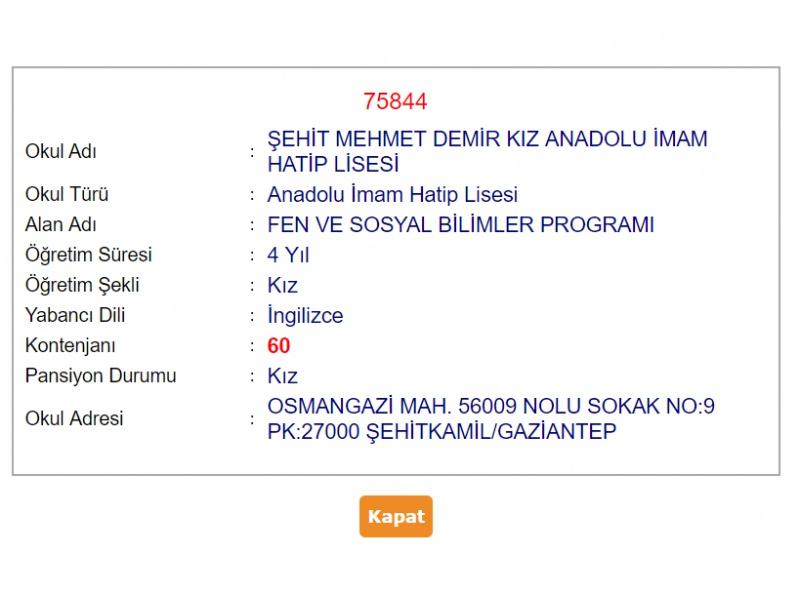 GAZİANTEP / ŞEHİTKAMİL - Şehit Mehmet Demir Kız Anadolu İmam Hatip Lisesi